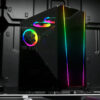 Este gabinete está diseñado para quienes buscan tener un setup sobrio pero con el estilo gamer, con vidrio templado en los paneles laterales y un frontal de forma trapezoidal, consiguiendo una estética bien pulida.