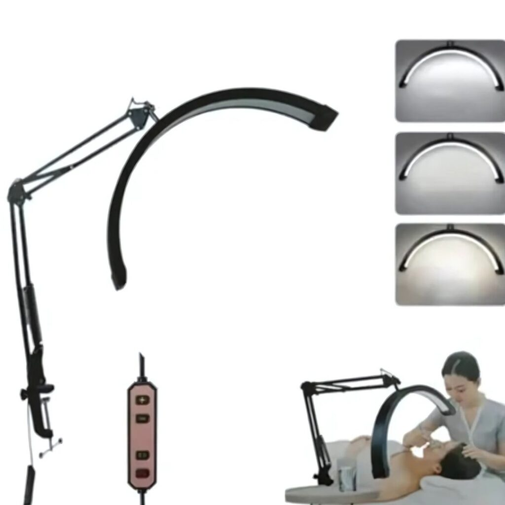 Esta lámpara con 192 LEDs proporciona luz diurna equilibrada sin sombras, con brazos flexibles y cabezas ajustables 360°. Fabricada en aluminio ligero, ideal para tratamientos de pestañas, maquillaje o tatuajes, con intensidad regulable.