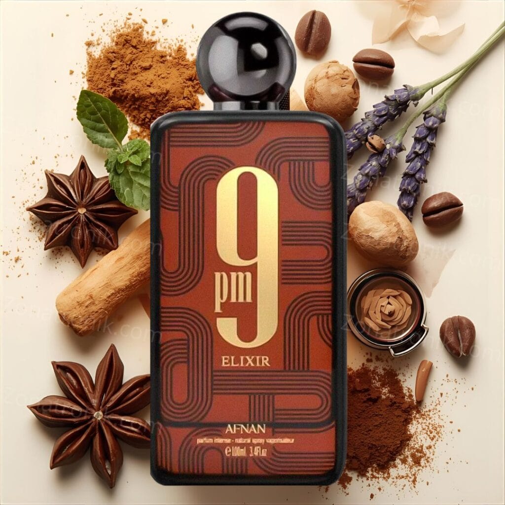 El perfume Afnan 9PM Elixir Intense cautiva con contrastes cálidos y atrevidos. La salida arropa con cardamomo, nuez moscada y elemi, que aportan chispa y luminosidad especiada; en el corazón se mezclan pimiento de Jamaica, cuero y lavanda para otorgar profundidad, elegancia y carácter; la base de vainilla, pachuli, lábdanum y rock-rose ofrece un cierre cremoso, amaderado y muy duradero. Ideal para veladas, cenas o momentos en los que quieres dejar huella.