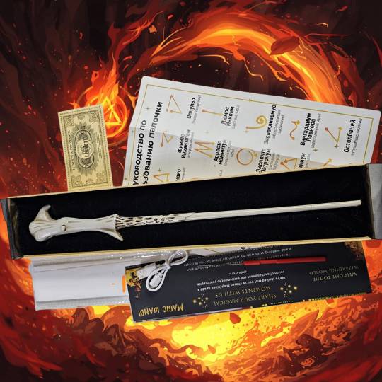 Varita temática de Dumbledore con efecto “fuego” para trucos visuales y presentaciones. Excelente para cosplay, eventos y coleccionistas.